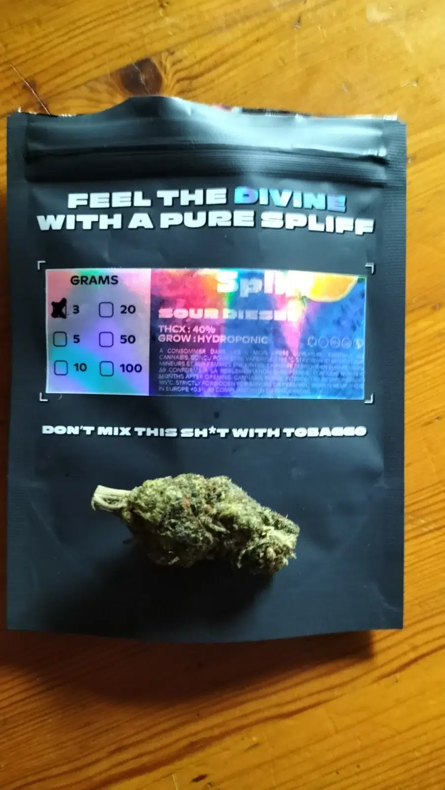 La Sour Diesel THCX, c’est le coup de boost que t’attendais : une sativa agressive, fraîche, ultra-piquante, avec un profil diesel/citron vert qui réveille tout sur son passage. Chaque tête est dense, généreusement résinée, et libère un arôme fuel qui ne laisse aucun doute sur l’origine de la génétique. Taillée pour ceux qui veulent de l’énergie, de la créativité et un effet clair et puissant, porté par ses 40% de THCX.